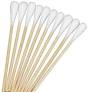 Sterile 6 inch wooden applicator stick with firmly wound cotton bud. Single use only. 100% cotton tip
